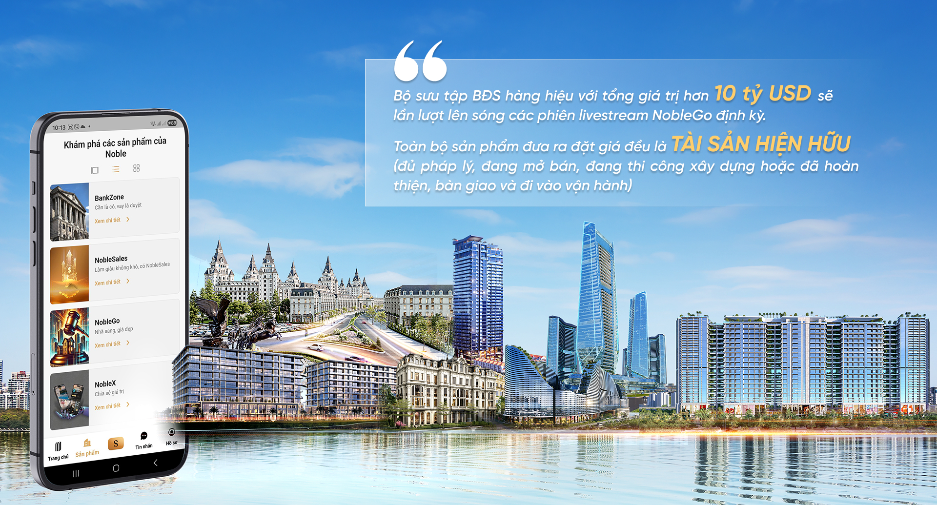 Hãy tưởng tượng bạn đang ngồi trong chính không gian quen thuộc của mình, và chỉ với một cú chạm mở trên ứng dụng Noble App, bạn sẽ bước vào phòng livestream của NobleGo: ngay lập tức, một thế giới bất động sản hàng hiệu hiện ra sống động ngay trước mắt.