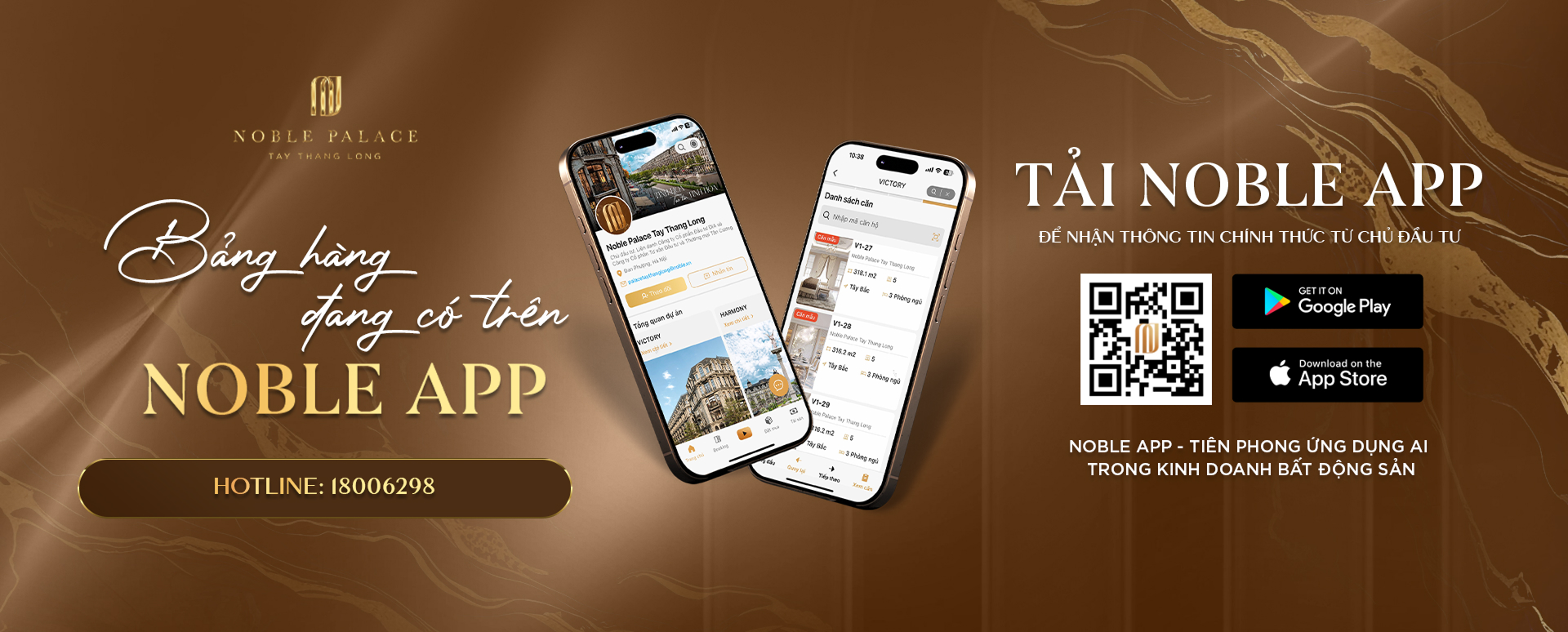 Hiện tại, toàn bộ bảng hàng chính thức của Noble Palace Tay Thang Long WorldHotels Residences đã được cập nhật trên ứng dụng Noble App – nền tảng giao dịch bất động sản tích hợp AI do chính chủ đầu tư phát triển. Khách hàng có thể tiến hành booking trực tiếp qua tính năng House For Sale, hoặc tham gia đặt giá minh bạch theo thời gian thực với tính năng livestream NobleGo, mang lại cơ hội đón đầu tiềm năng tăng giá vượt trội khi dự án hoàn thiện.